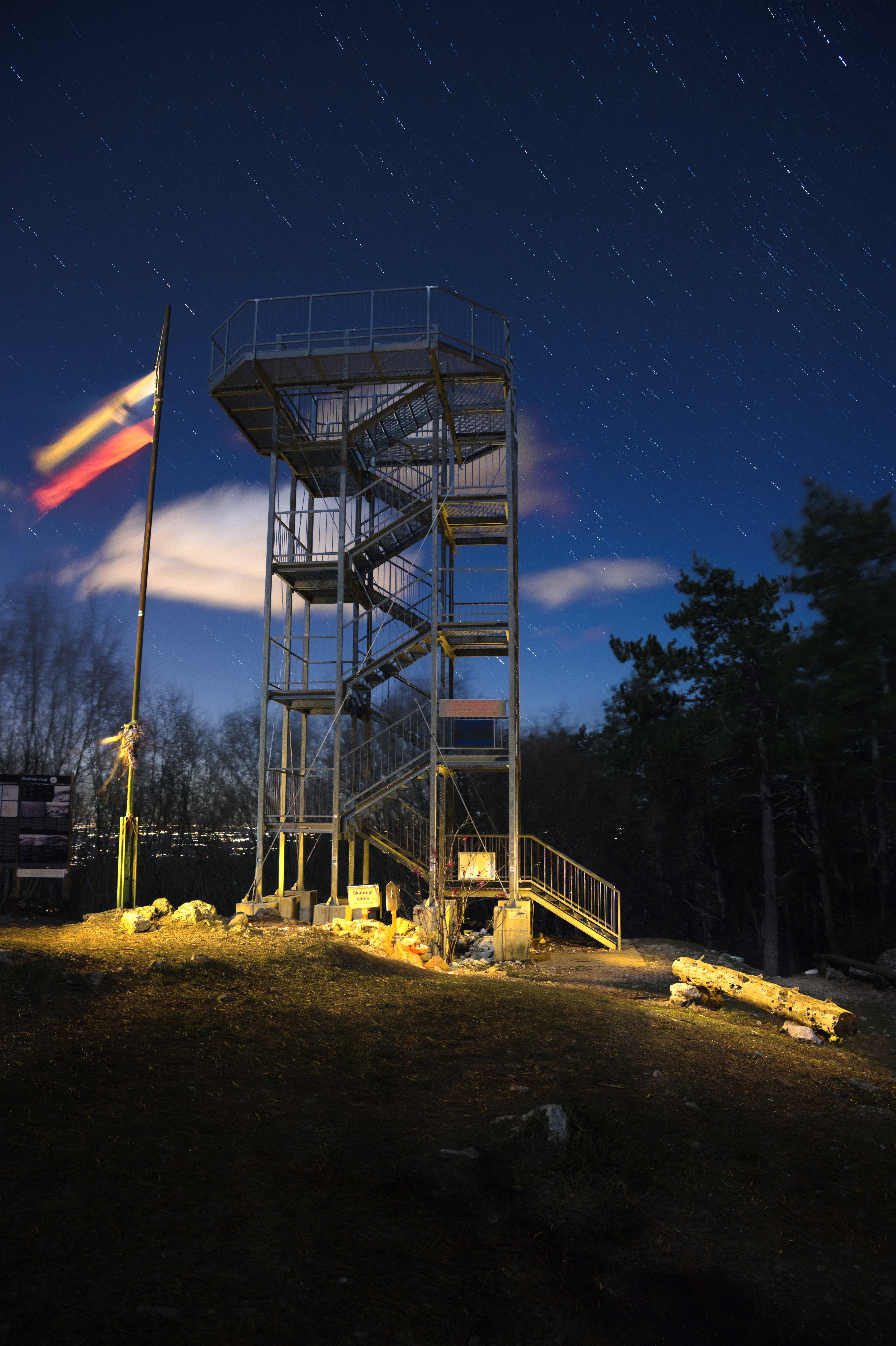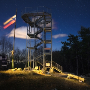 Runners pass through a 280-meter-long cave from World War I (a headlamp is recommended). The trail continues on the northern slopes toward the statue of St. Francis, then follows the ridge to the Sveta Gora basilica. The descent features stone steps leading to a forest trail toward Preški Vrh.