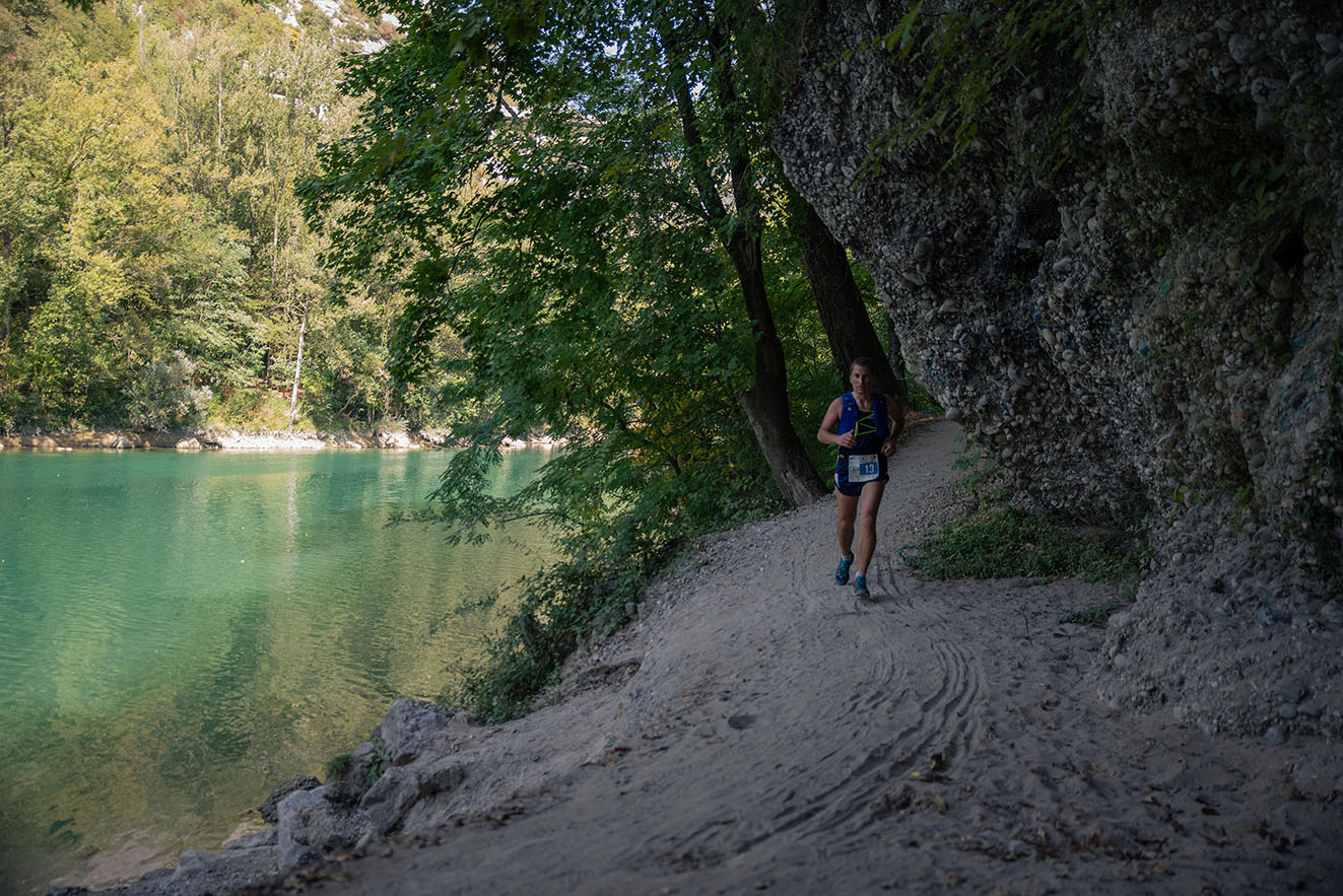 The route begins at the Kayak Center in Solkan, where runners follow the Soča River downstream beneath multiple bridges. The first ascent takes place on a paved road through Solkan and gradually increases towards the Škabrijel peak. At the water fountain, runners will find the first aid station, where the route turns right onto a gravel road. The course continues along a mix of single tracks and paved sections until the junction at Vratca, where it enters World War I trenches. A challenging technical section follows, leading to the Škabrijel summit (646 m a.s.l.).